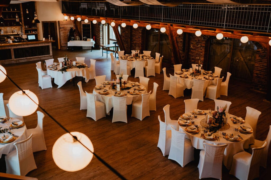 Ein wichtiger Aspekt für uns ist die technische Ausstattung der Location. Hof Frien überzeugt mit professioneller Sound- und Lichttechnik, die perfekt auf den Raum abgestimmt ist. Mit einer einfachen Steuerung über „Lightrider“ können wir die Stimmung im Raum nahtlos von romantischen Melodien bis hin zu ausgelassenen Partyhits wechseln. So sorgen wir für den perfekten musikalischen Rahmen für eure Unterhaltung.