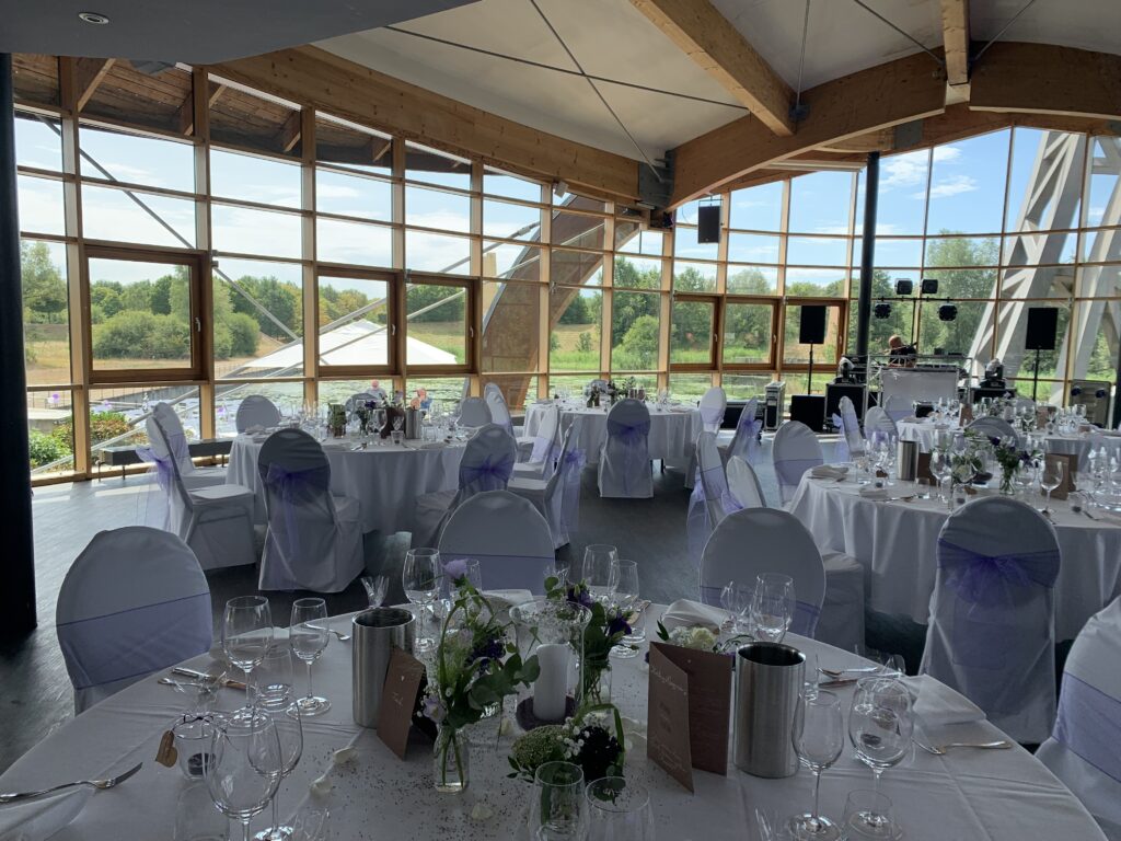 Die Seeebene des EXPOWAL, mit ihren 350 m², bietet nicht nur ausreichend Platz für eine intime Feier mit bis zu 120 Gästen, sondern auch genug Platz für eine Band oder ein Duo, um eure Hochzeit musikalisch zu bereichern. Und wenn ihr groß feiern wollt, dann ist die rundum verglaste Eventebene mit ihren beeindruckenden 800 m² ideal, um auch einer größeren Band oder sogar einer Bigband den Platz zu bieten, den sie braucht. Der Größe des Ensemble sind dabei keine Grenze gesetzt.